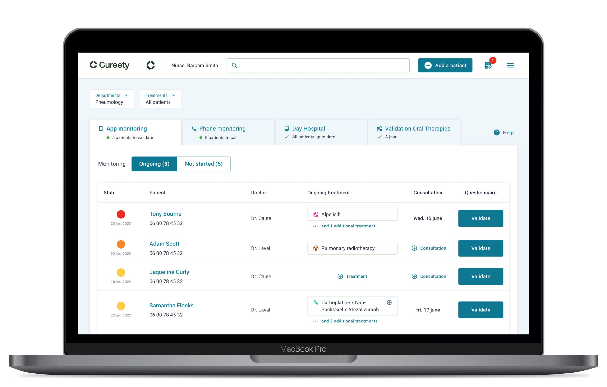 "We use Cureety as a remote monitoring tool for all patients in the Porte de Saint-Cloud clinical center, for all types of patients, all types of location and all types of treatments, from chemotherapy to immunotherapy, targeted therapy or radiotherapy."